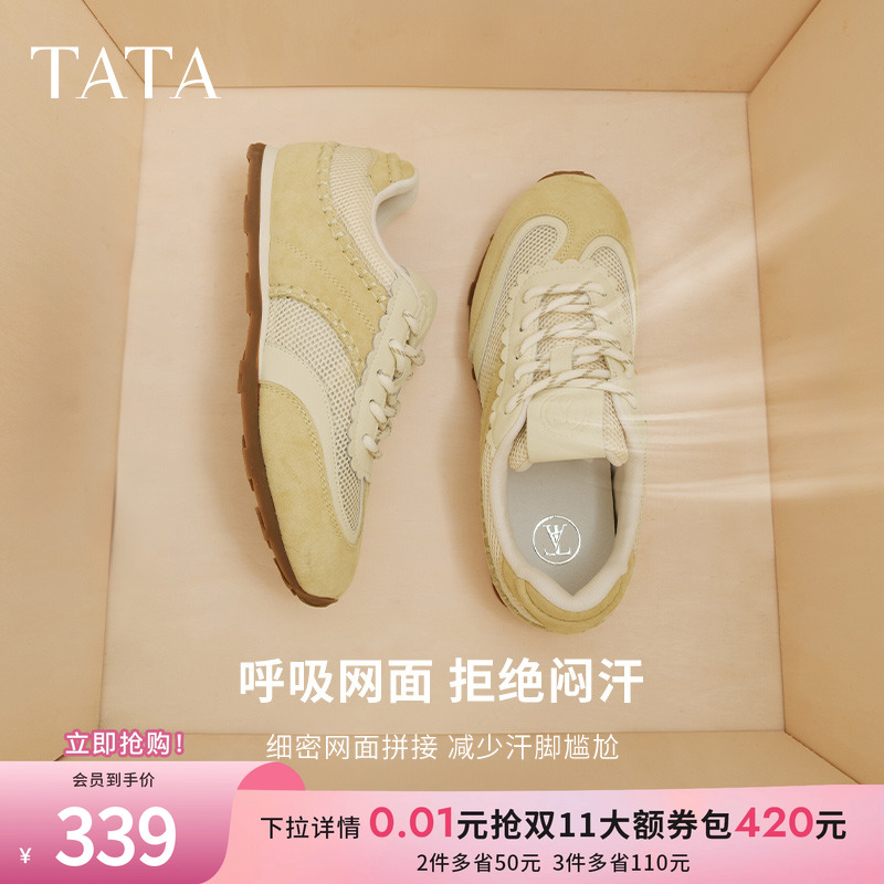 TATA他她平底德训鞋女阿甘鞋网面运动鞋透气板鞋2025夏新GQP01BM5