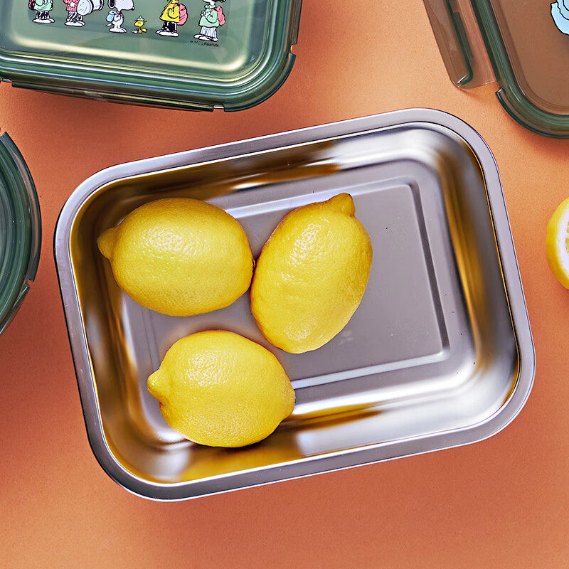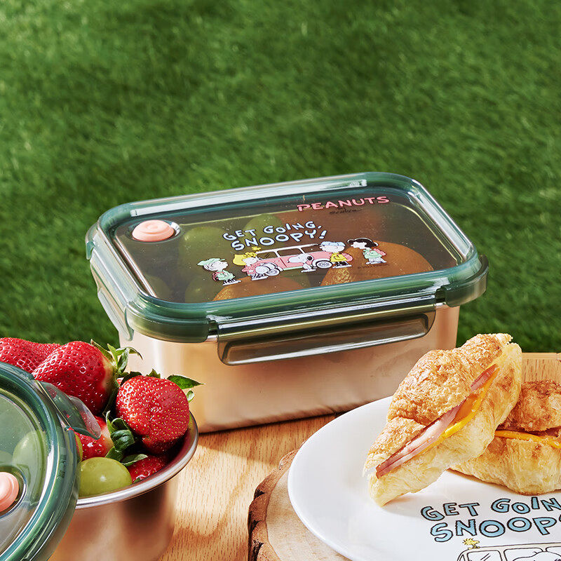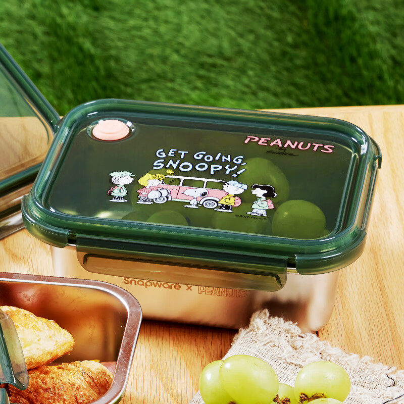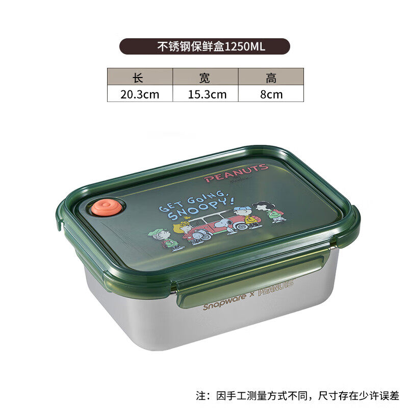 康宁保鲜盒304不锈钢饭盒2个装1250ml史努比联名款盒体可进微波炉