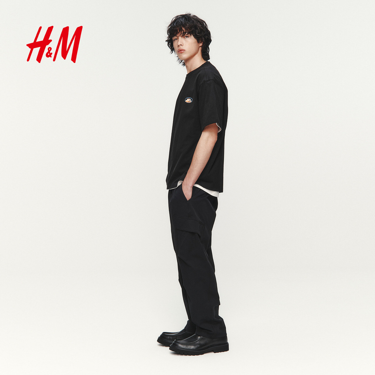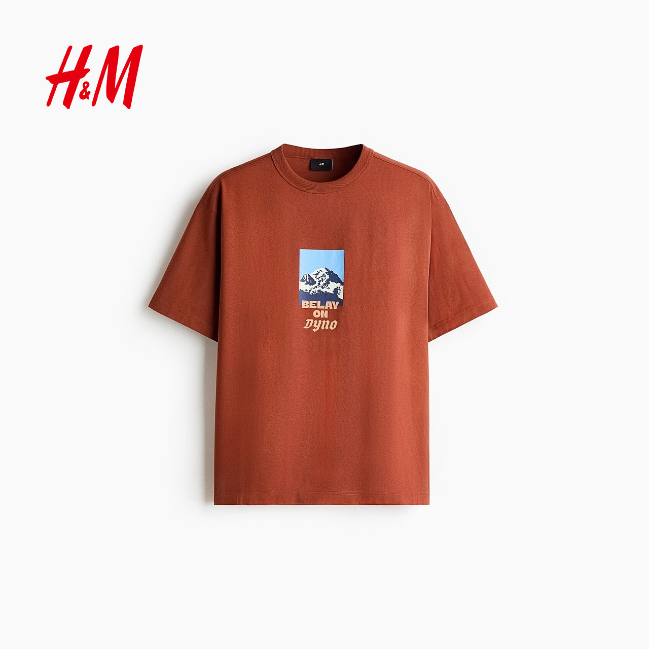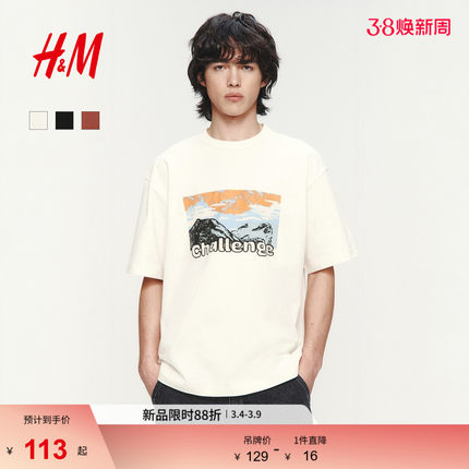 HM男装女装T恤2026春季新款宽松印花情侣装圆领短袖上衣1326431