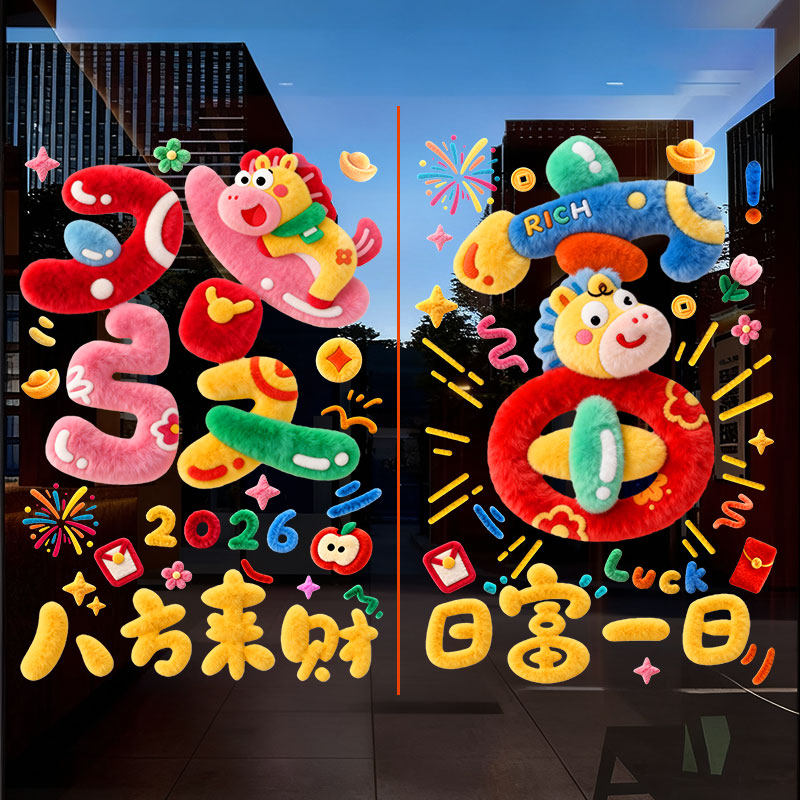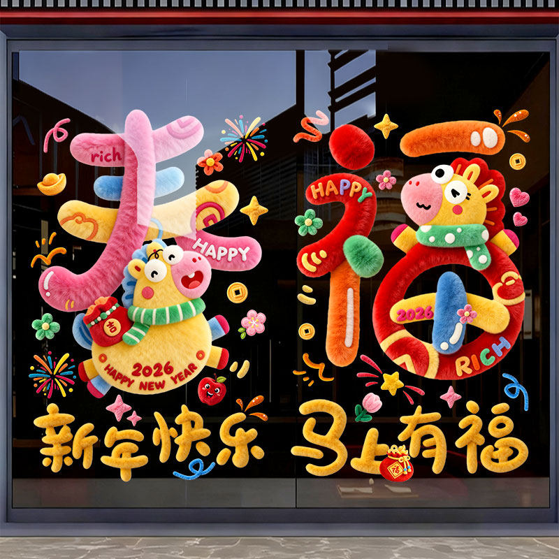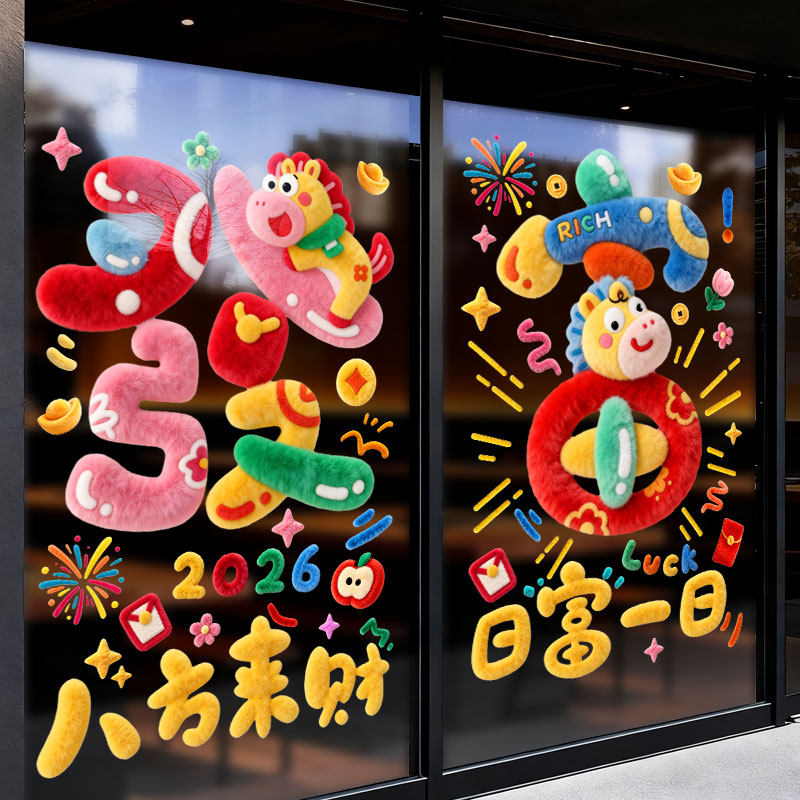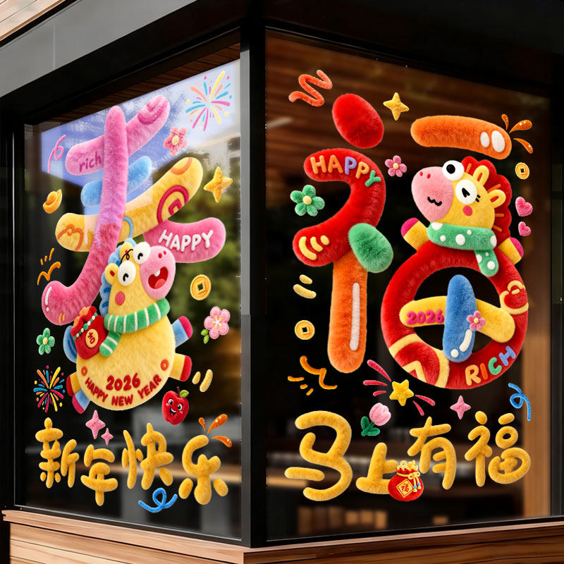 2026新年窗花双面贴纸静电贴装饰品商场橱窗玻璃贴膜装饰过年布置