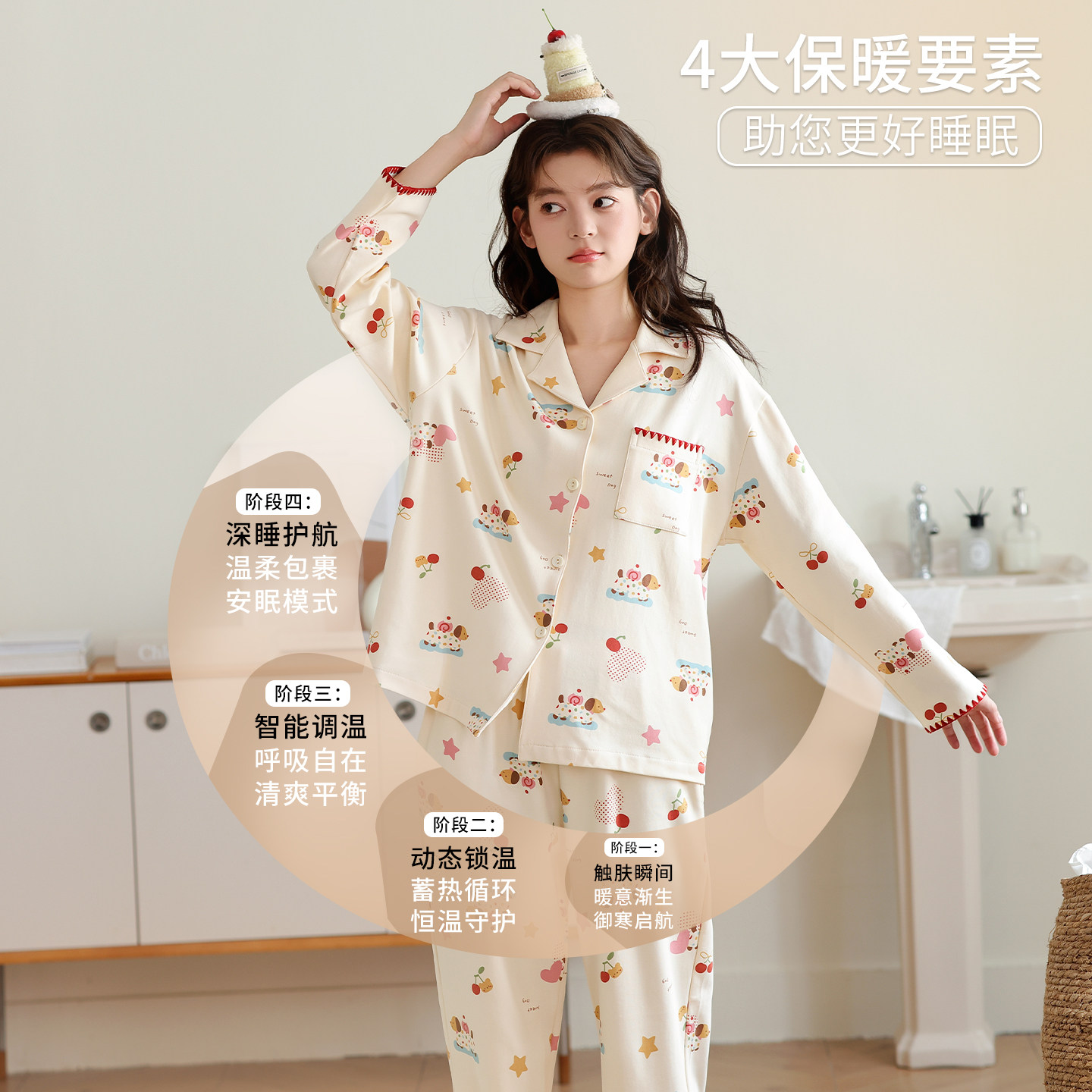 都市丽人纯棉睡衣女秋春季2026新款甜美可爱卡通家居服套装可外穿