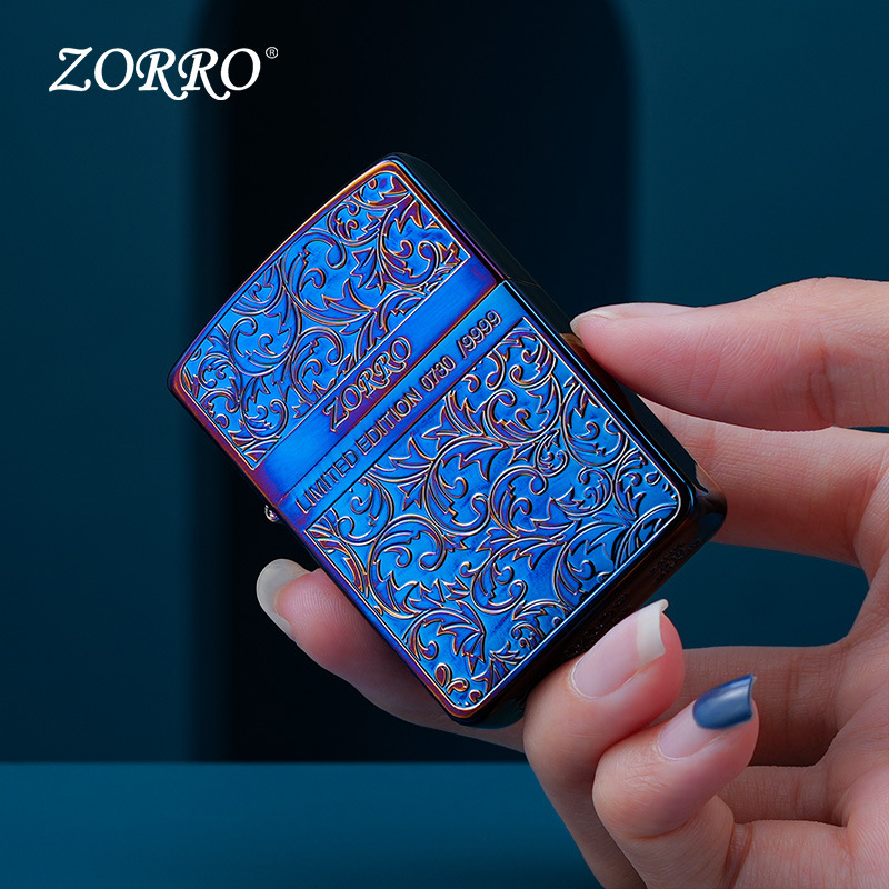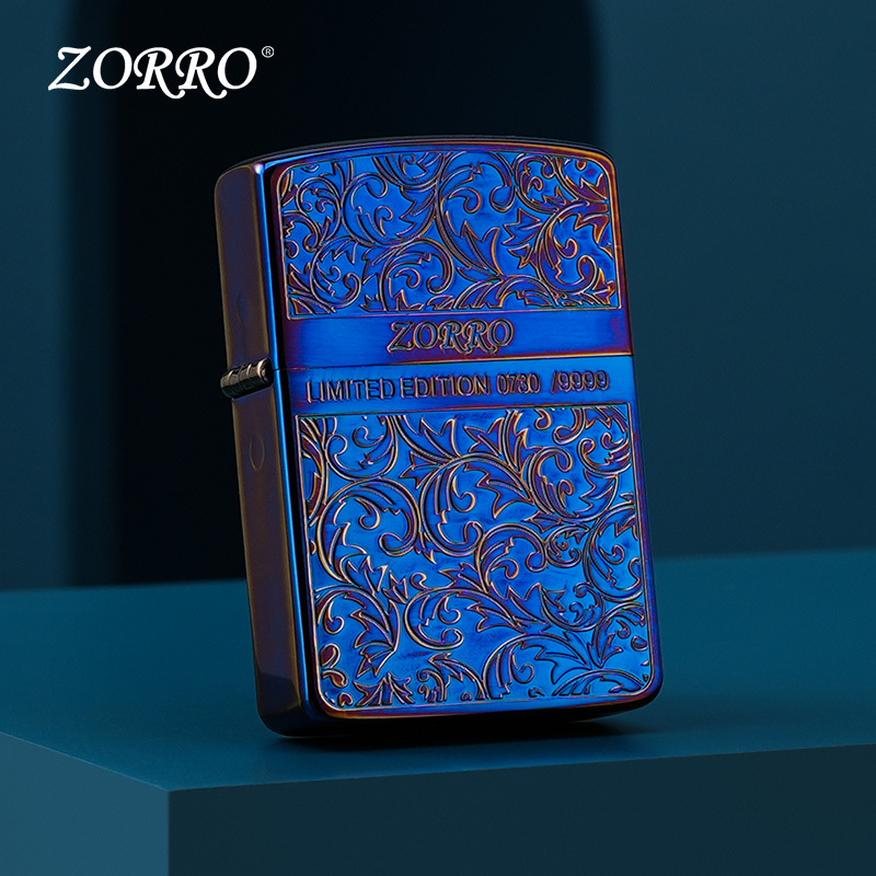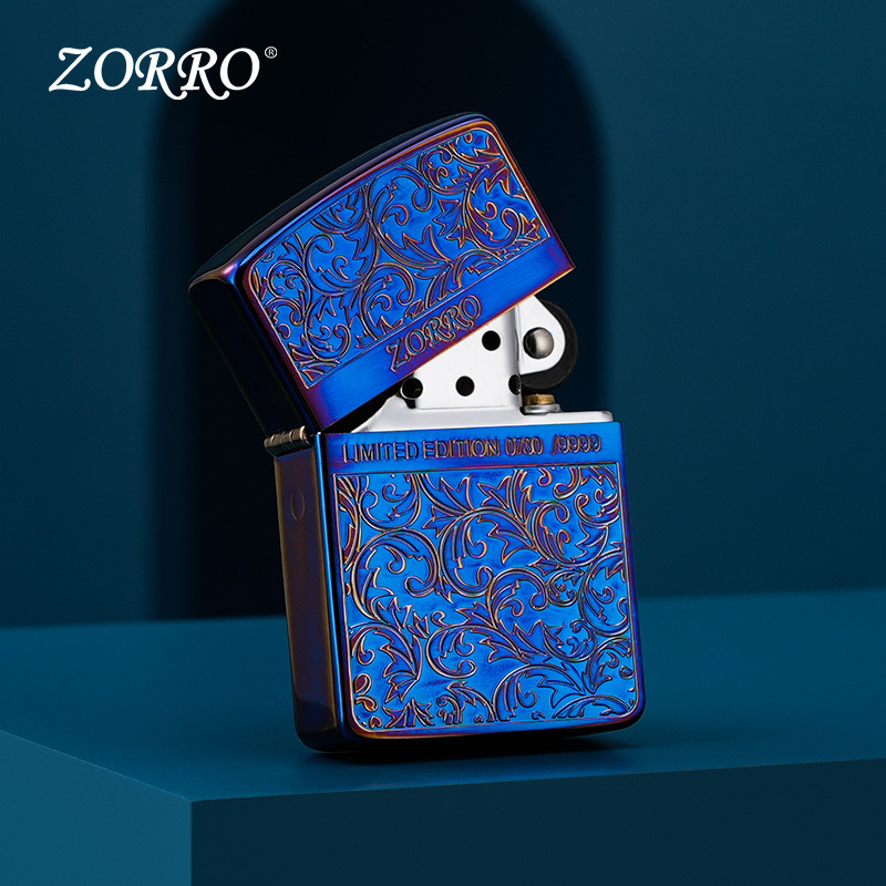ZORRO佐罗正品纯铜砂轮防风煤油打火机1941复刻版熏蓝色唐草限量