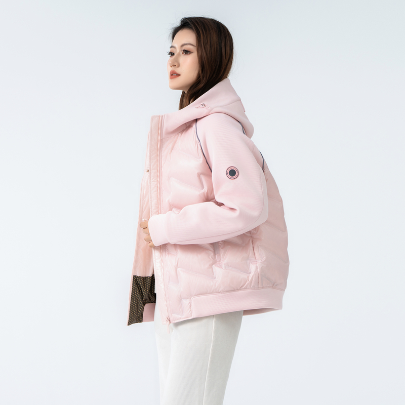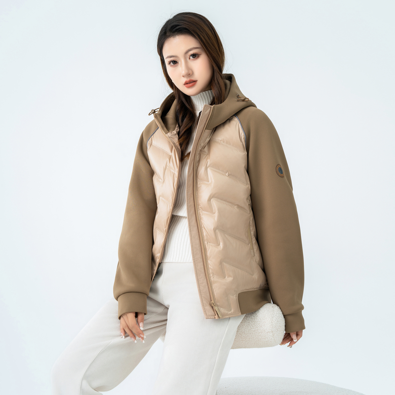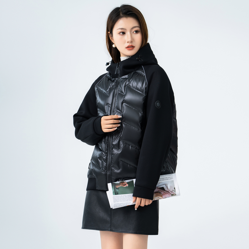 雪中飞2025秋冬新款女士短款羽绒服拼接外套舒轻薄简约插肩袖文艺