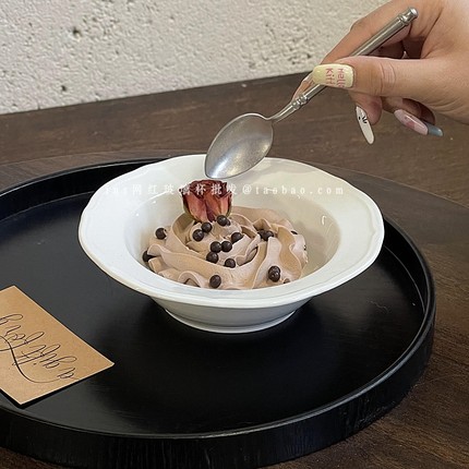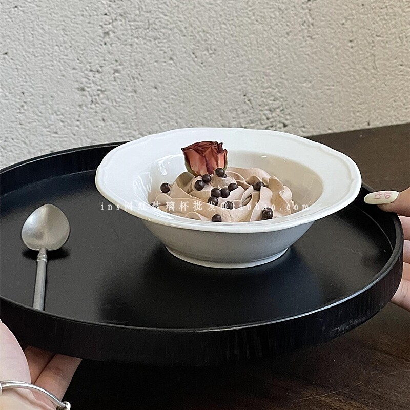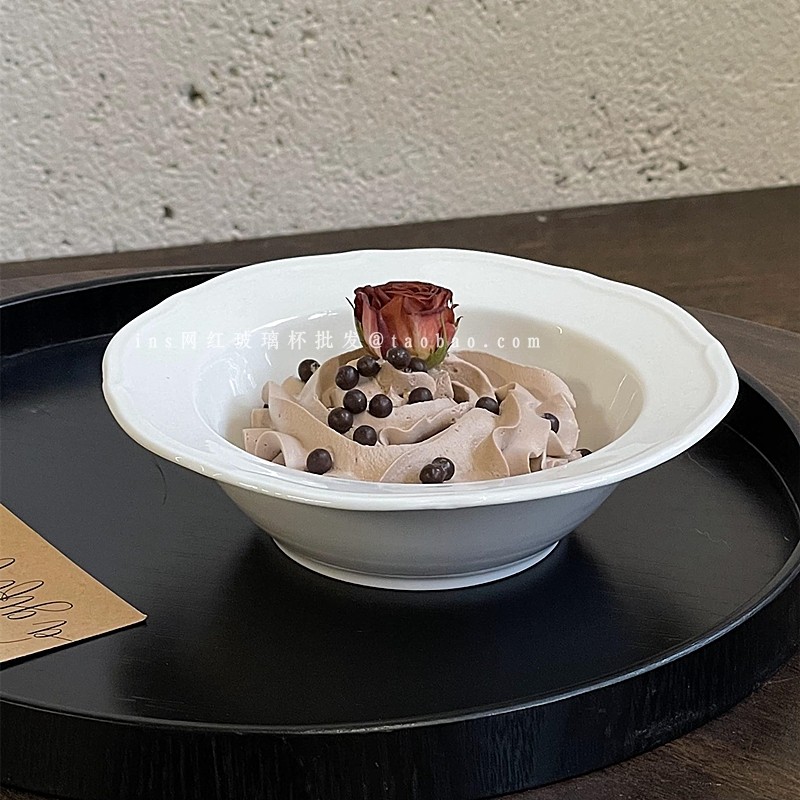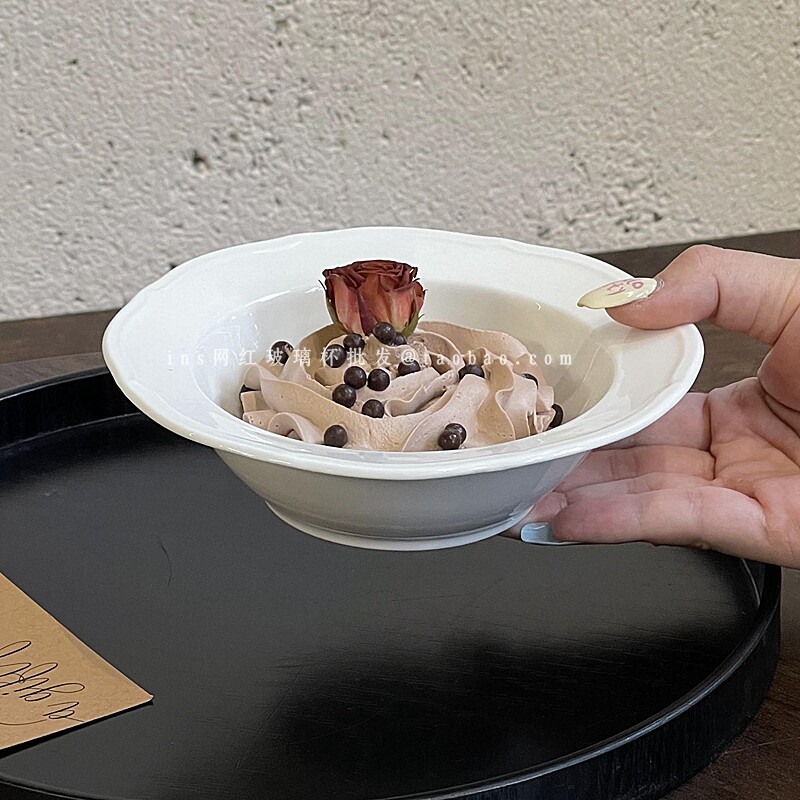 法式ins纯色花边陶瓷蔬菜沙拉小碗简约水果酸奶麦片碗甜品蛋糕碗