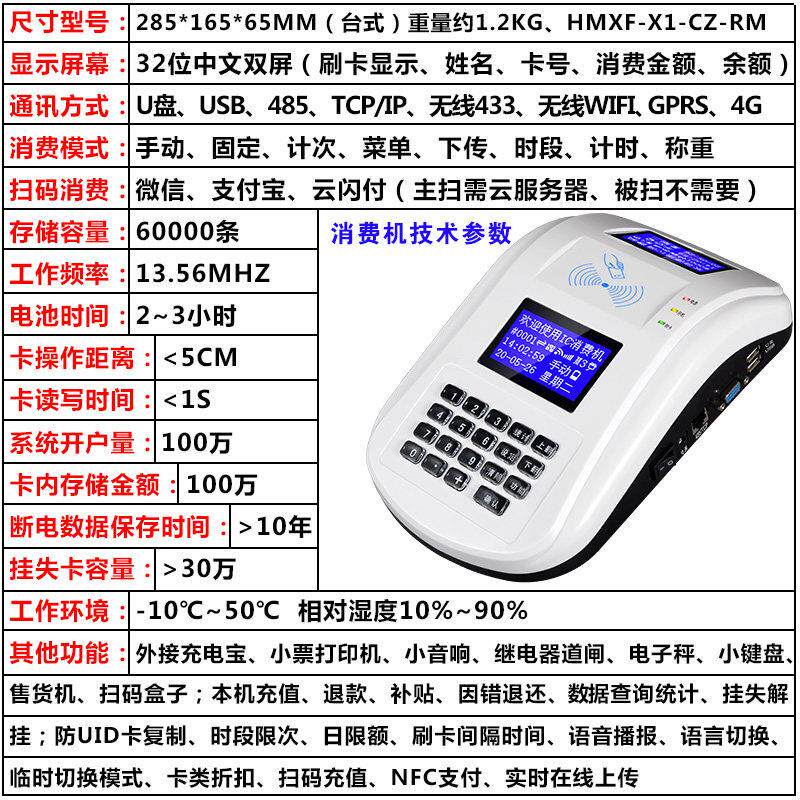 食堂刷卡机ic卡消费机学校售饭打卡机饭卡机订餐机充值一卡通系统