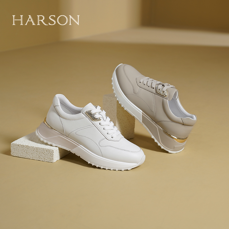 哈森秋冬新款厚底休闲鞋女时尚轻便软面运动鞋女HCL249602
