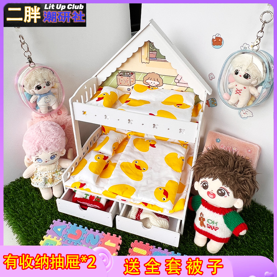 适用于拉布布小床套装棉花娃娃床15/20cm双人双层bjd芭比莉娜床品