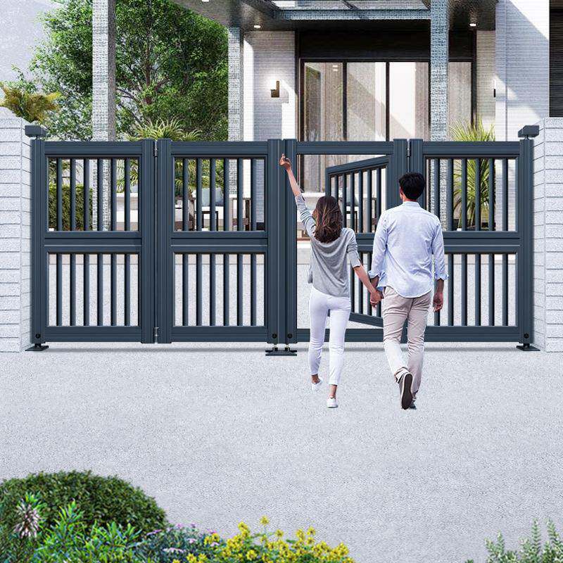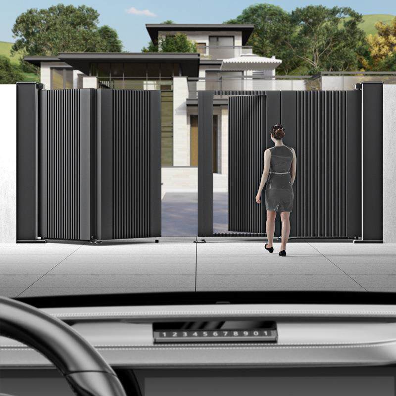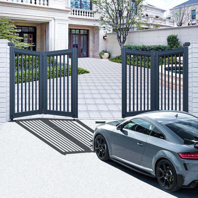 别墅庭院围墙铝艺大门乡村自建房铝合金悬浮智能遥控电动折叠防撞