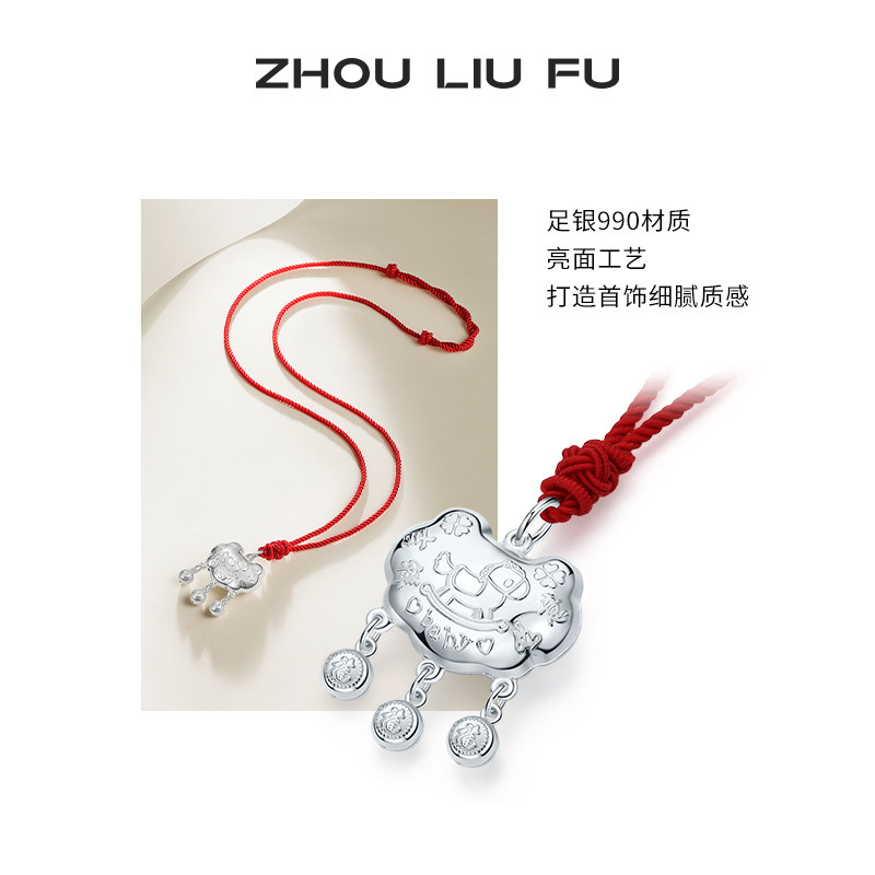 周六福生肖马平安锁宝宝款吊坠本命年S990足银萌马福锁银饰礼物
