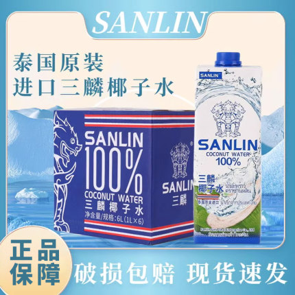 泰国进口三麟100%天然椰子水进口含有电解质NFC椰青果汁1L*6瓶