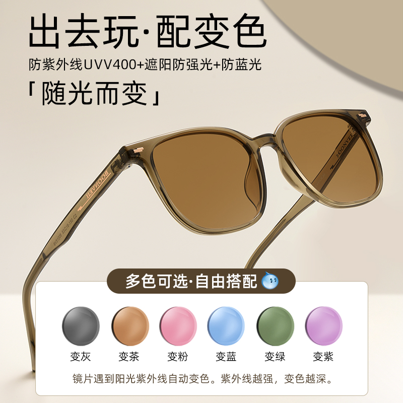 自动感光变色眼镜女防蓝光抗辐射可配度数超轻冷茶色大框显瘦素颜