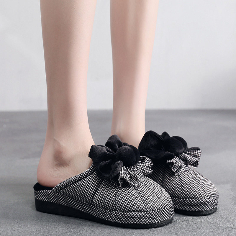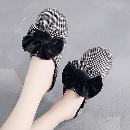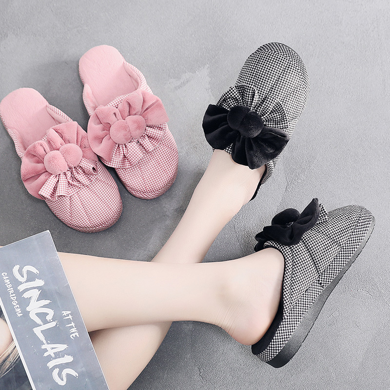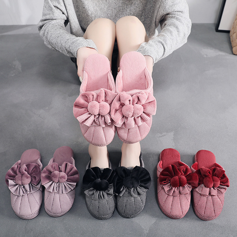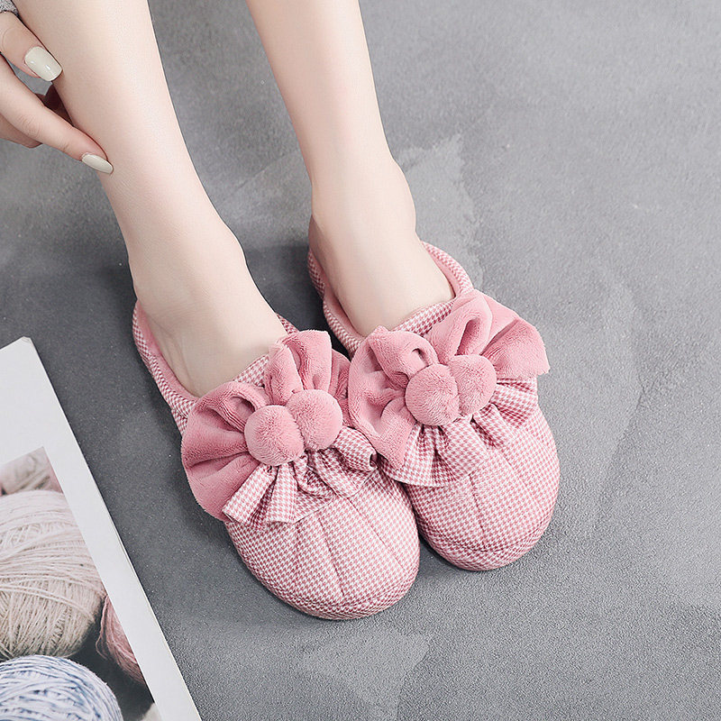 坡跟厚底棉拖鞋女可爱绒面室内居家软底防滑家居韩版家用拖鞋冬季