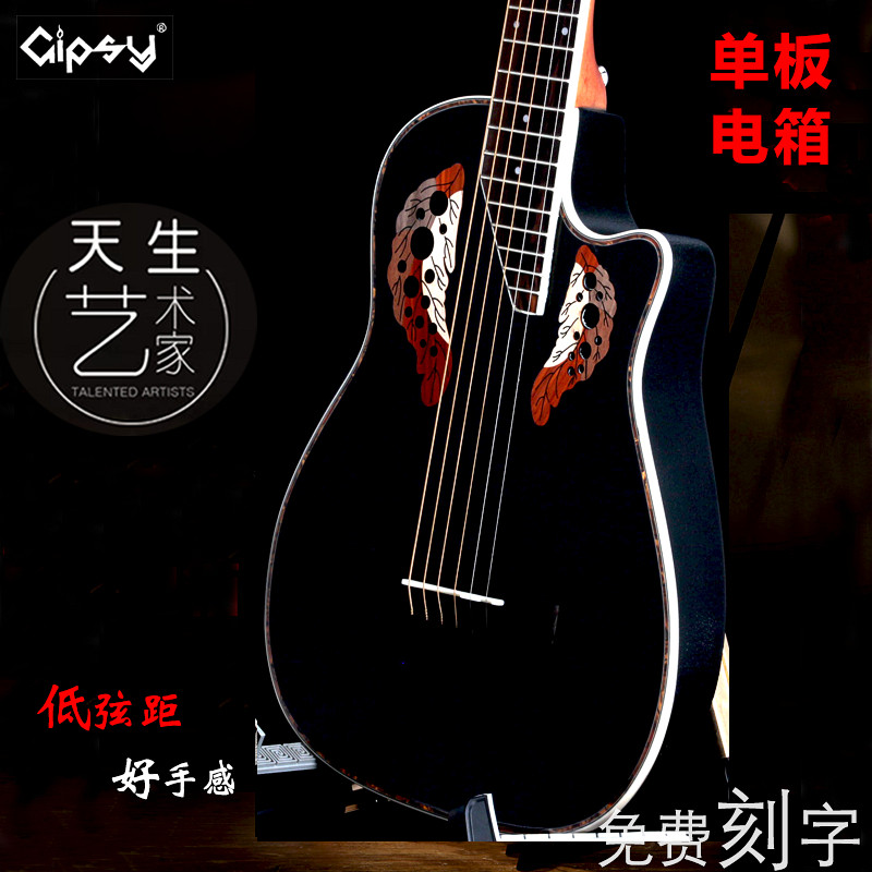 Gipsy全单板加震吉他葡萄孔36 41寸40民谣38初学入门黑Beyond电箱