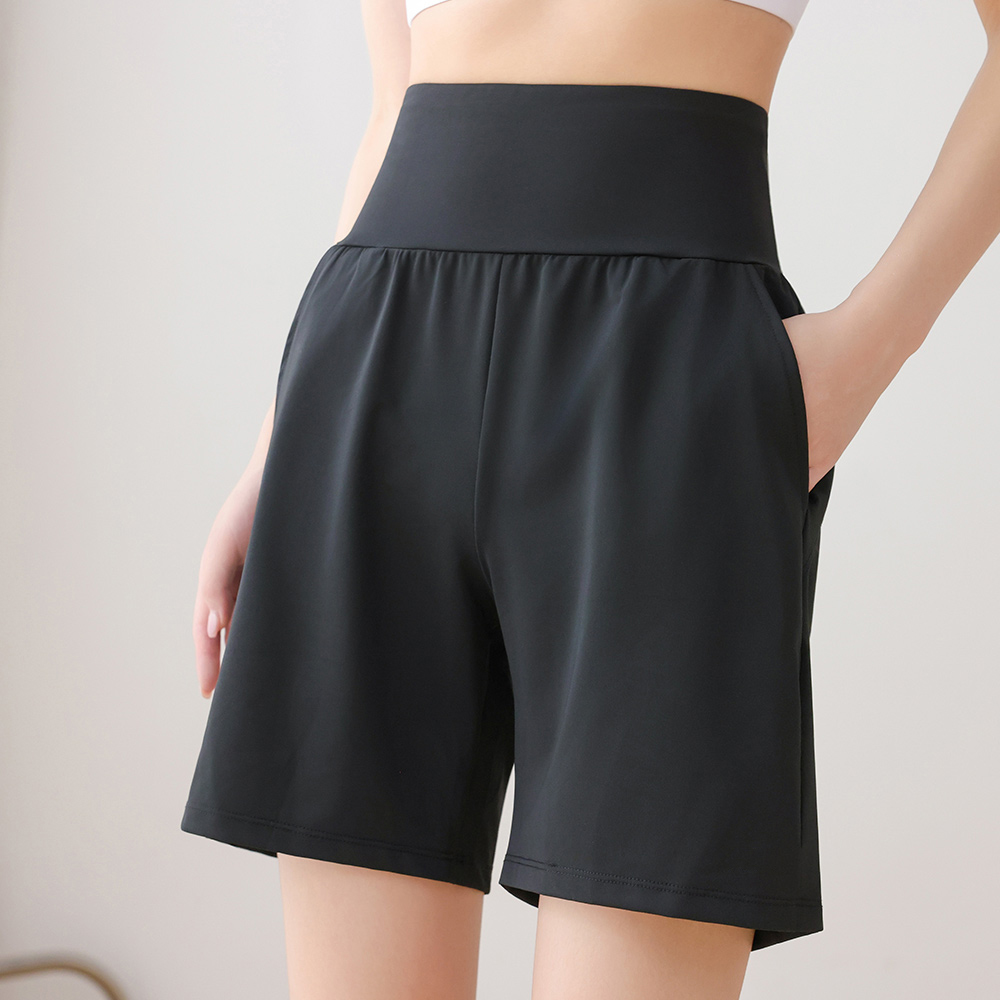 带口袋运动短裤女高腰瑜伽四分裤