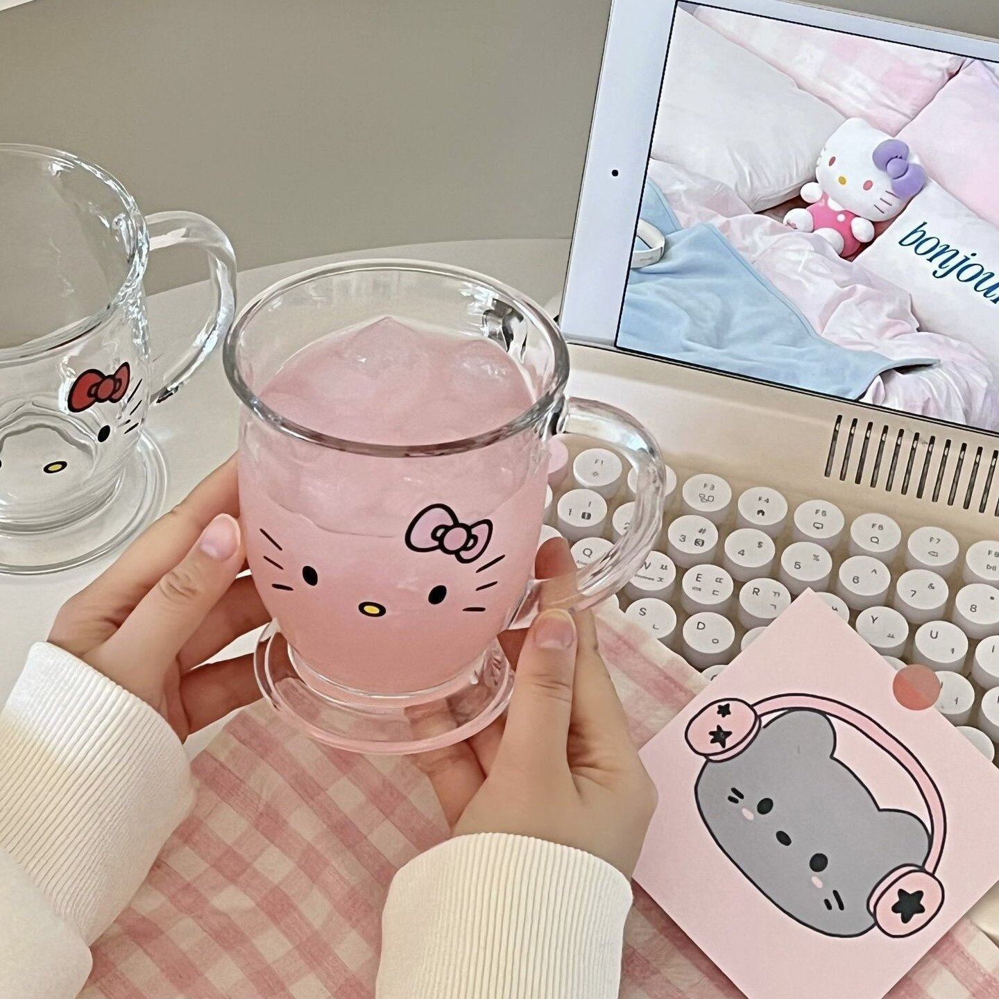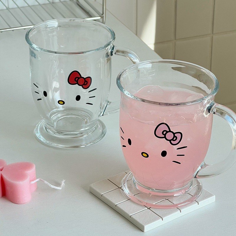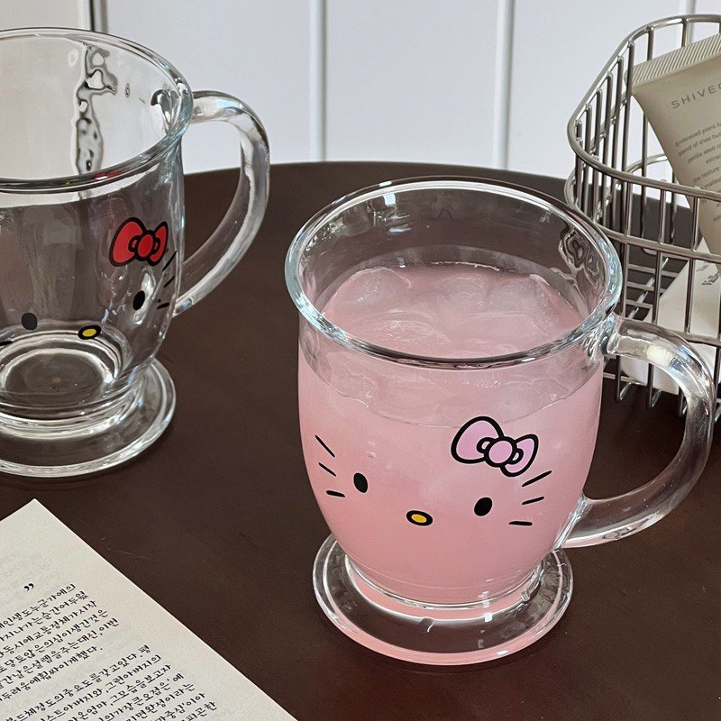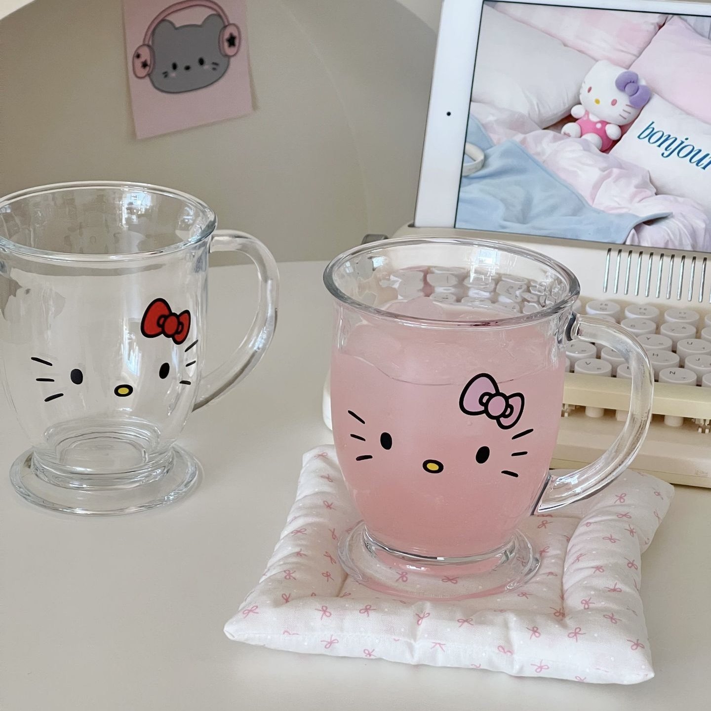 卡通kitty可爱玻璃杯把手杯大容量水杯马克杯咖啡杯牛奶果汁杯子