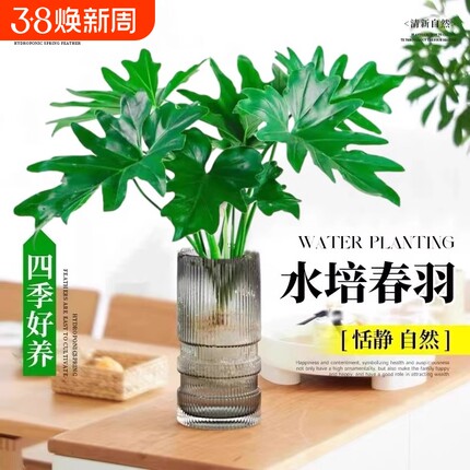 水培春羽盆栽室内客厅花卉水养富贵竹大叶绿萝好养春雨绿植物摆放