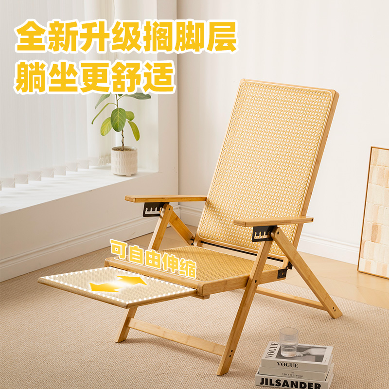 竹躺椅折叠午休老人专用阳台可坐可躺结实耐用懒人藤编休闲椅凉椅