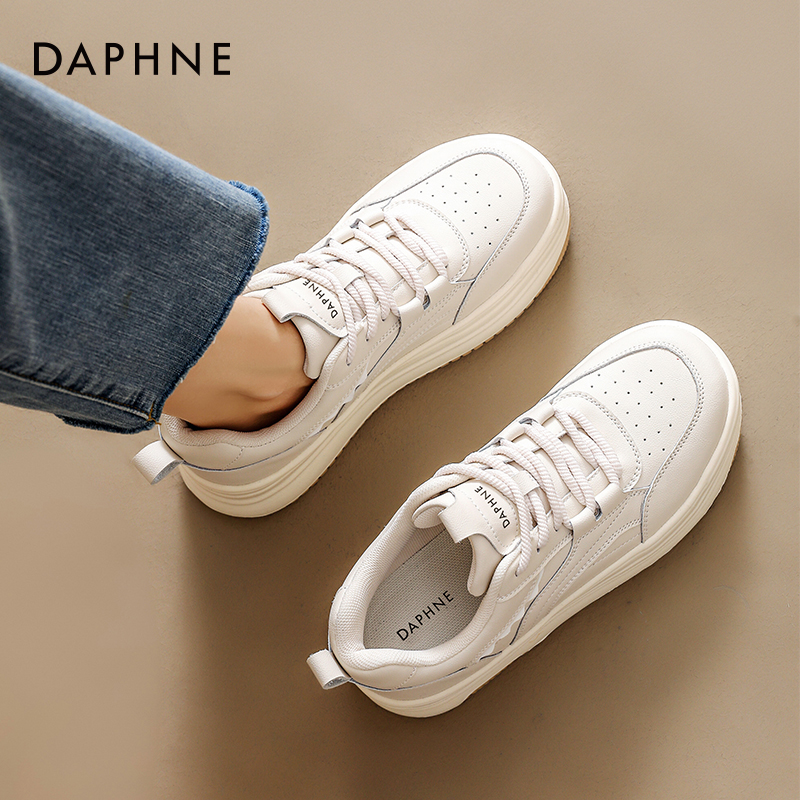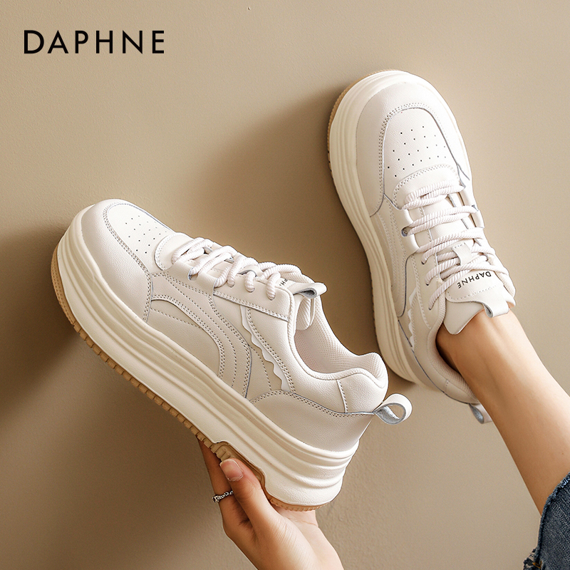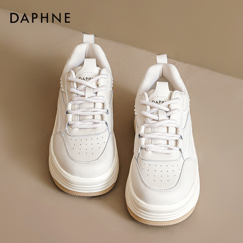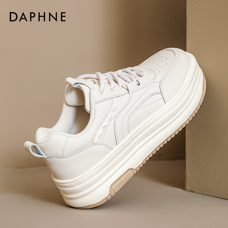 达芙妮厚底小白鞋女2025新款秋冬百搭鞋子女圆头皮面休闲增高板鞋