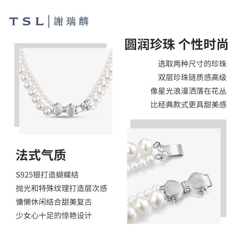 TSL谢瑞麟S925银淡水珍珠项链蝴蝶结银饰BD474