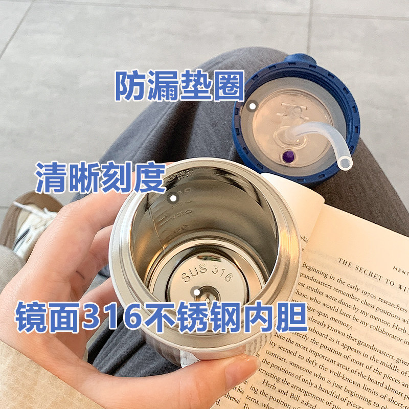 史努比保温杯女生高颜值可爱吸管水杯女新款2025便携学生儿童杯子