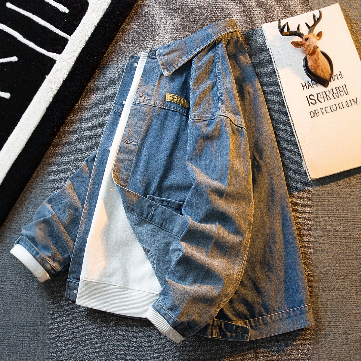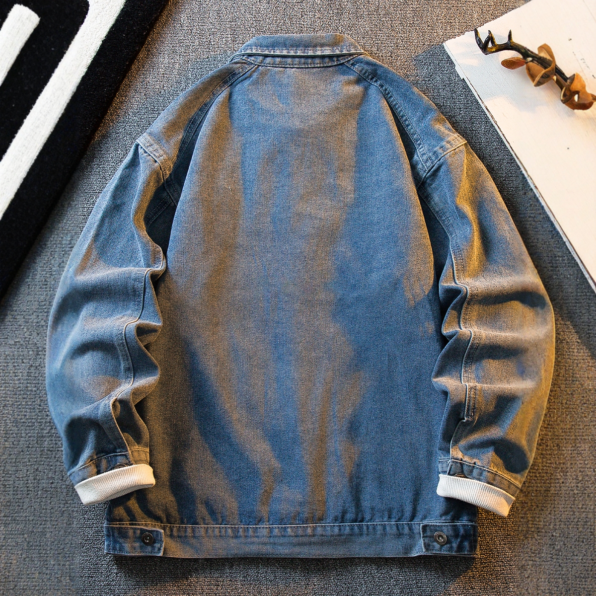 高端水洗翻领牛仔外套男款春秋2025新款潮牌宽松休闲男士工装夹克