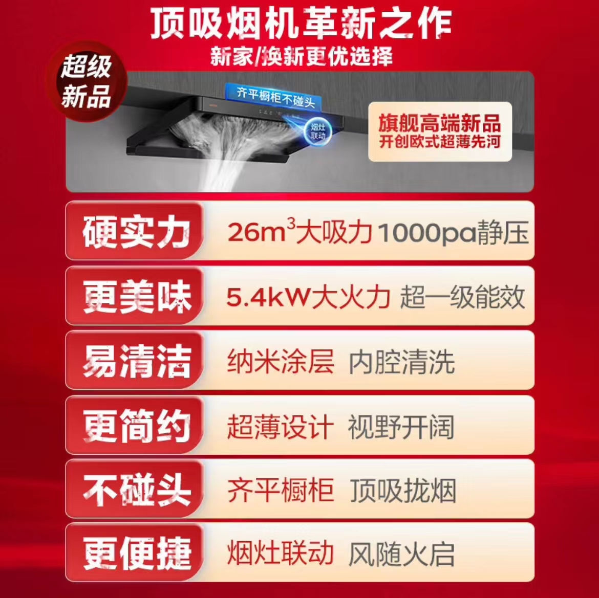 首单直降华帝小飞蝶S35/6+95/100b超薄欧式顶侧油烟机燃气灶套装