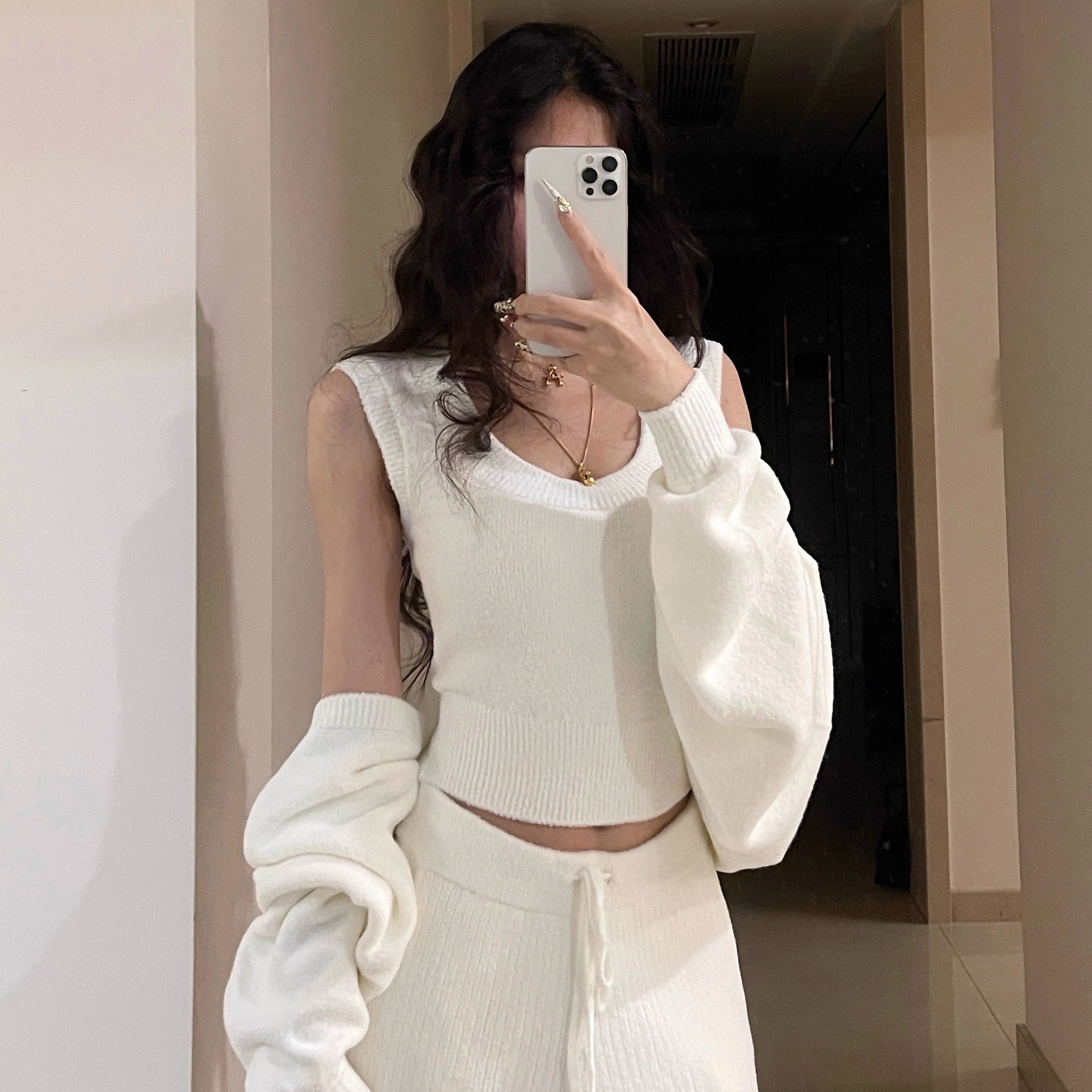 【消烦局长】澳绒·软糯糯针织毛织舒适亲肤背心外套直筒裤女套装