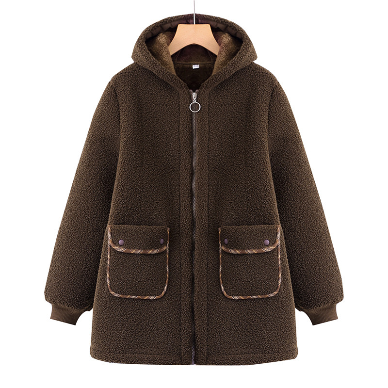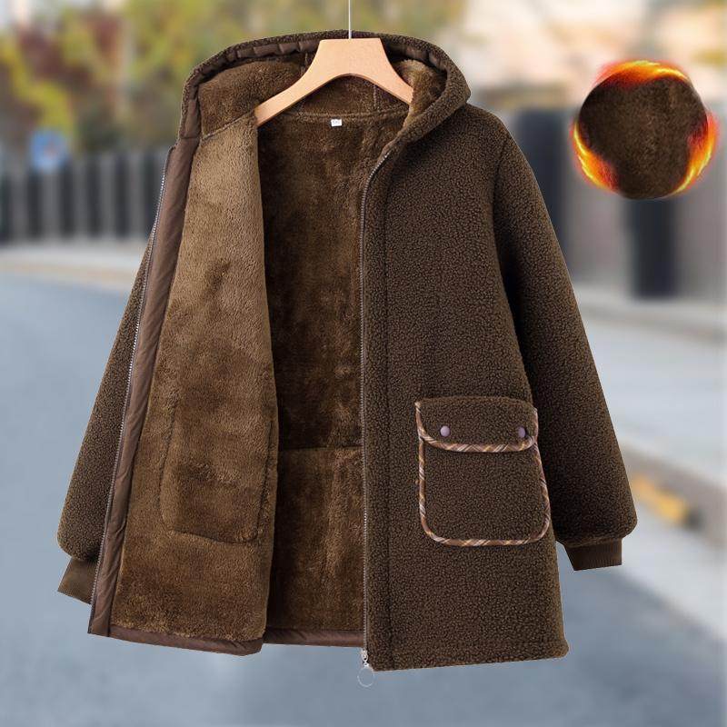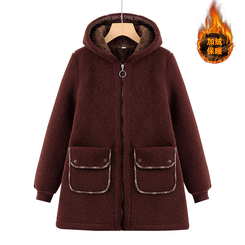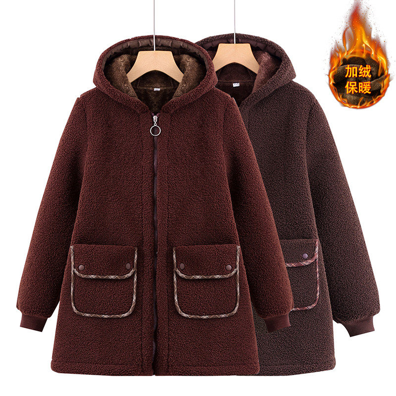 中老年妈妈冬装摇粒绒加厚连帽外套加绒保暖中长款羊羔绒奶奶棉袄