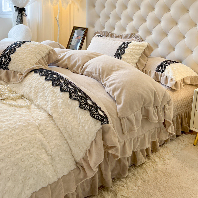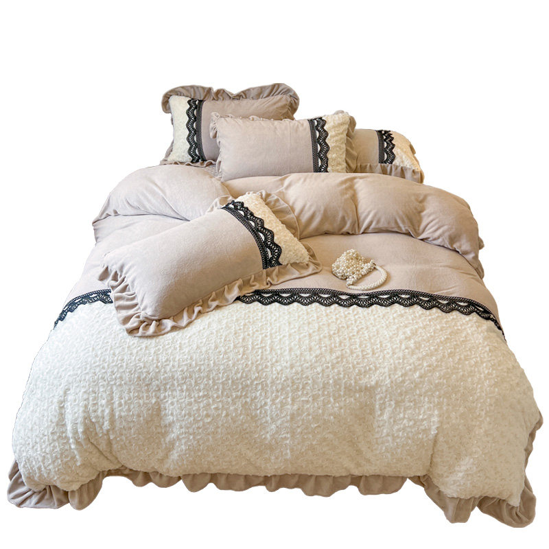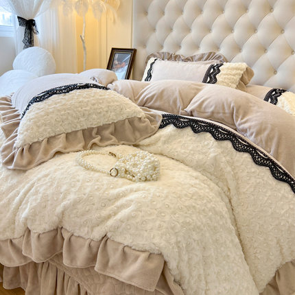 冬季法式床上四件套牛奶珊瑚绒被套床单加绒床盖款冬天法兰绒床品