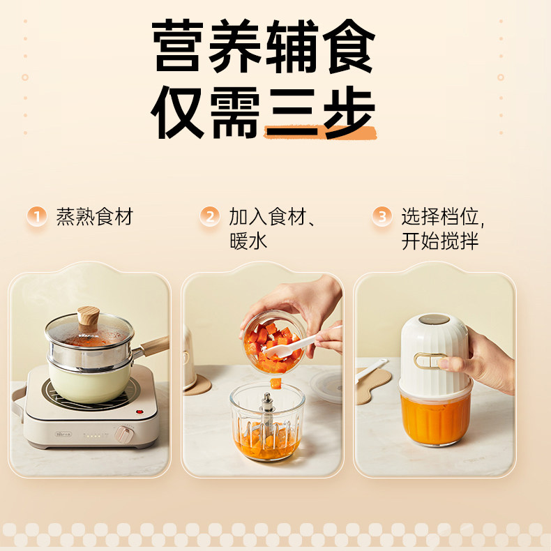 小熊婴儿辅食机宝宝料理机无线便携式搅拌机宝宝专用辅食机绞肉机