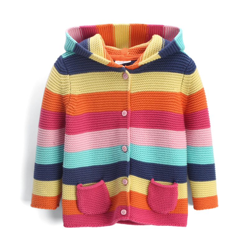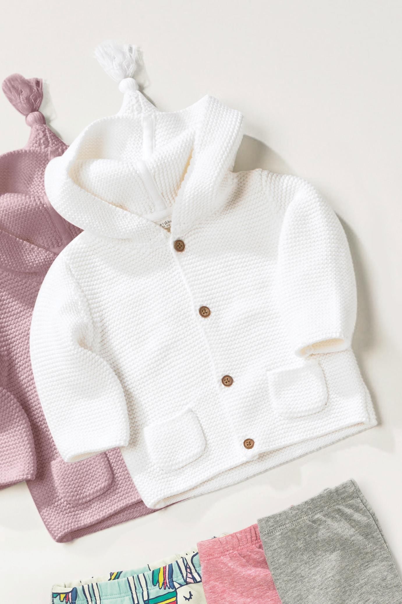 英国NEXT春秋款女宝宝纯棉针织帽衫女童粗毛线纯色卫衣针织外套