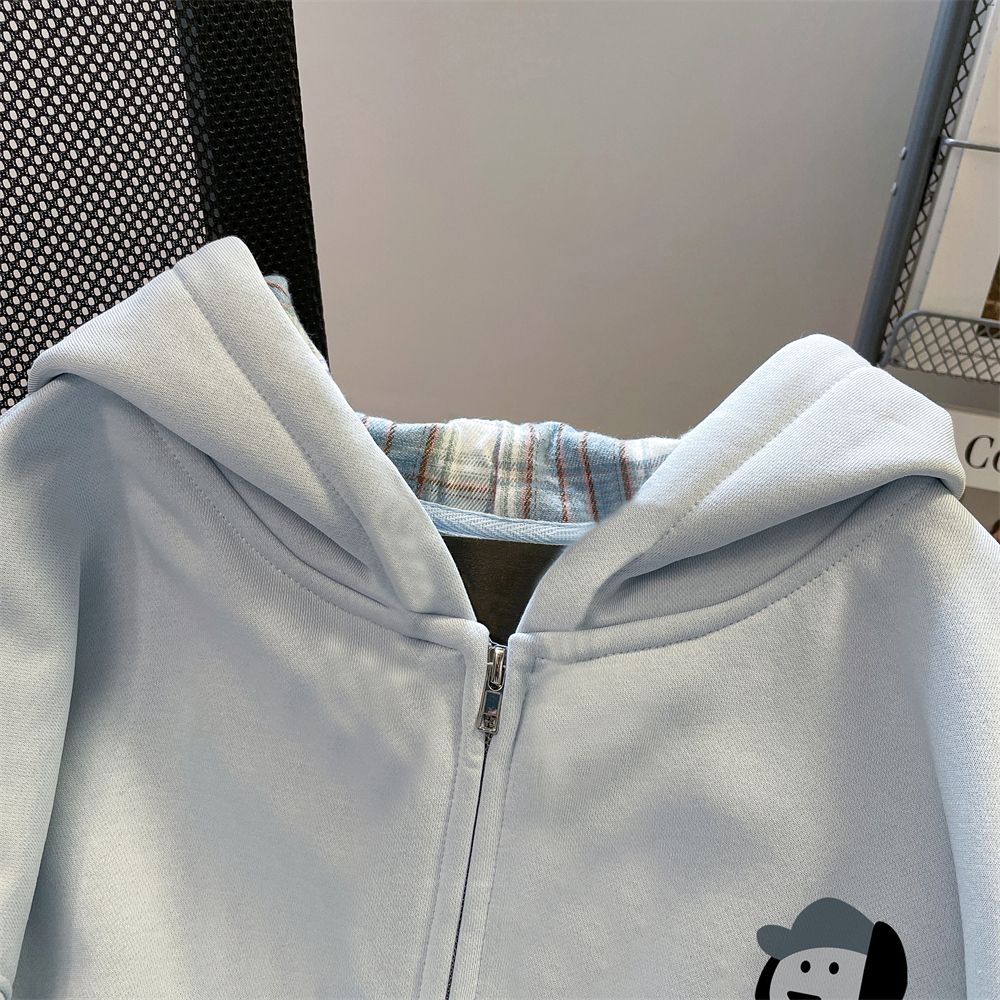 韩系慵懒风可爱小狗连帽开衫卫衣女秋冬oversize加绒加厚拉链外套