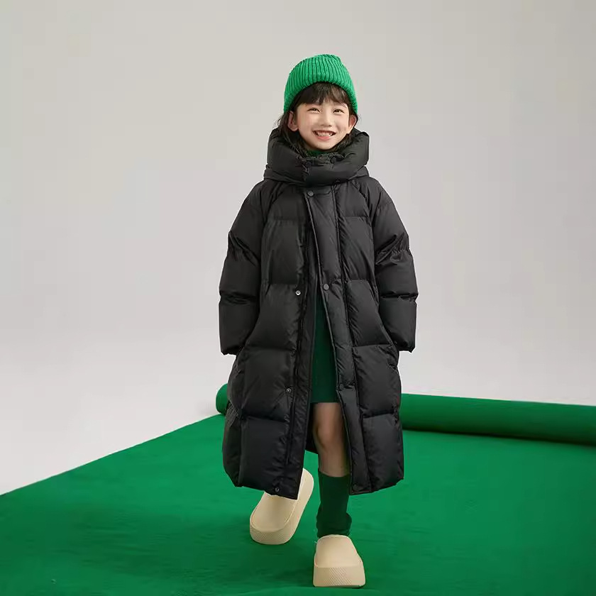 儿童冬装长款羽绒棉服男女童中大童休闲棉衣防寒连帽宽松纯色