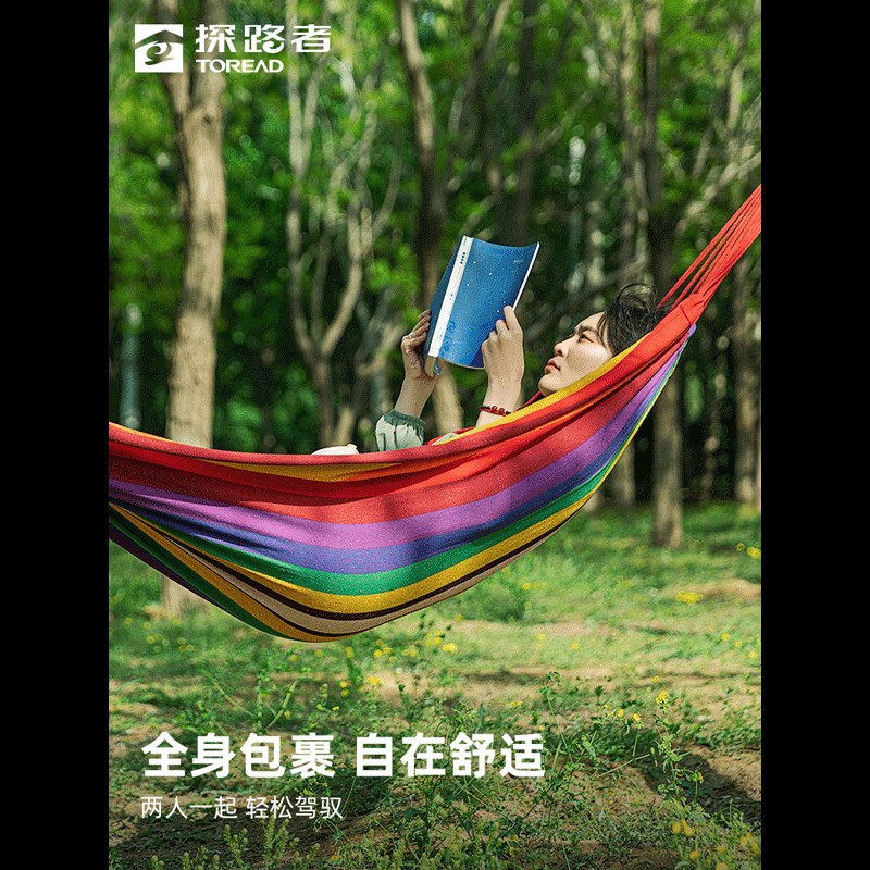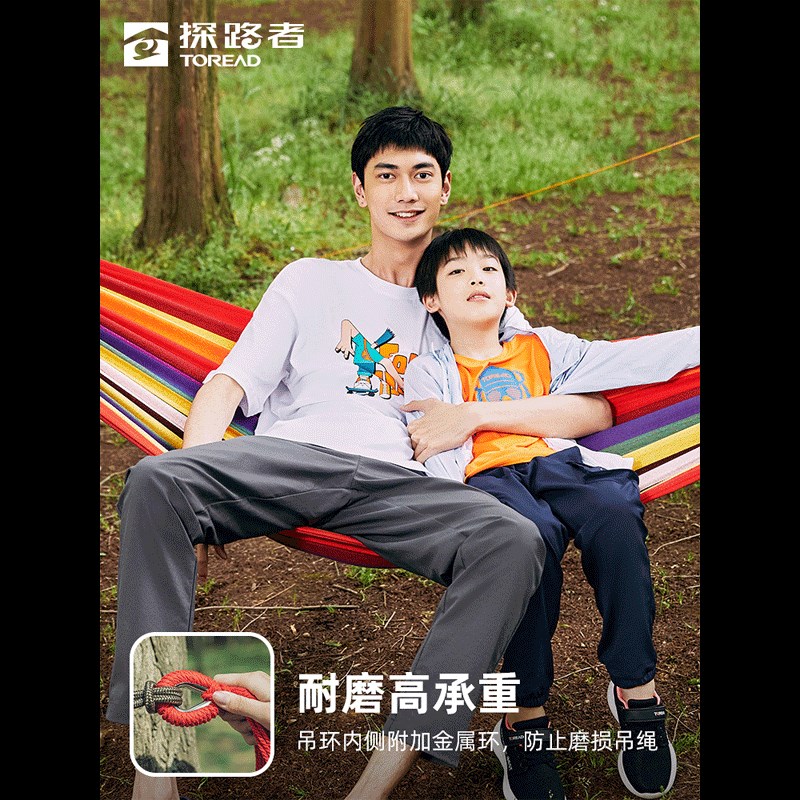 探路者吊床户外露营秋千便携帆布防侧翻睡袋双人郊游吊椅公园网床