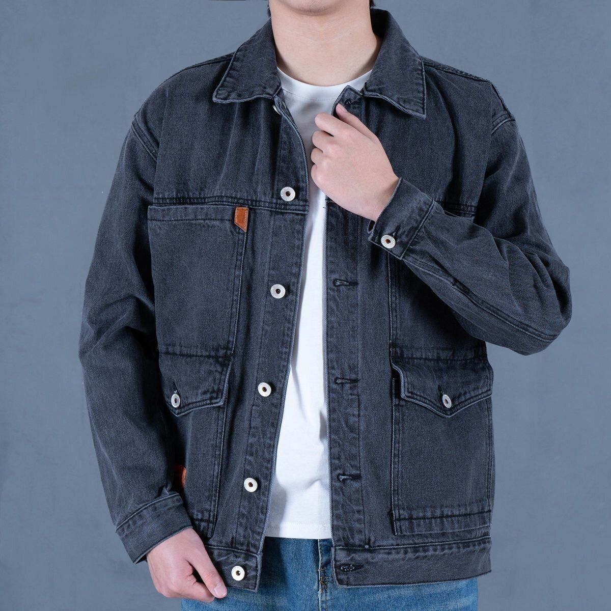 春秋款牛仔外套男士宽松夹克2025年新款工装休闲百搭拼接上衣男款