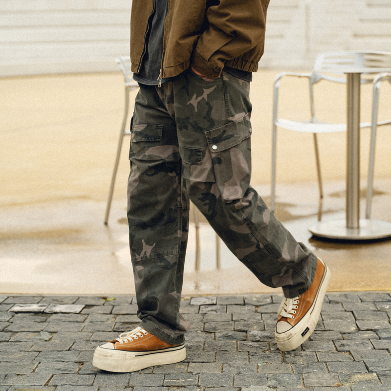 BDCT 2025美式复古迷彩印花多口袋工装裤男春秋款直筒休闲裤长裤