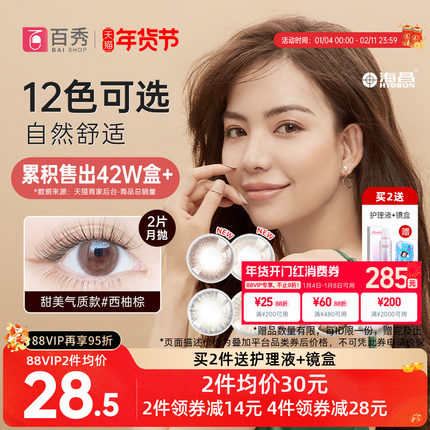 海昌星眸美瞳月抛盒2片直径隐形近视眼镜女学生官方正品混血自然