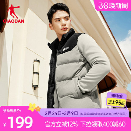 乔丹羽绒马甲外套男士2025年冬季新款商场同款马夹保暖拼接羽绒服