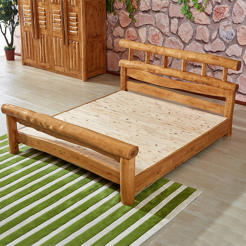 实木床全实木双人床现代中式硬板床柏木床1.8米原生态民宿家具