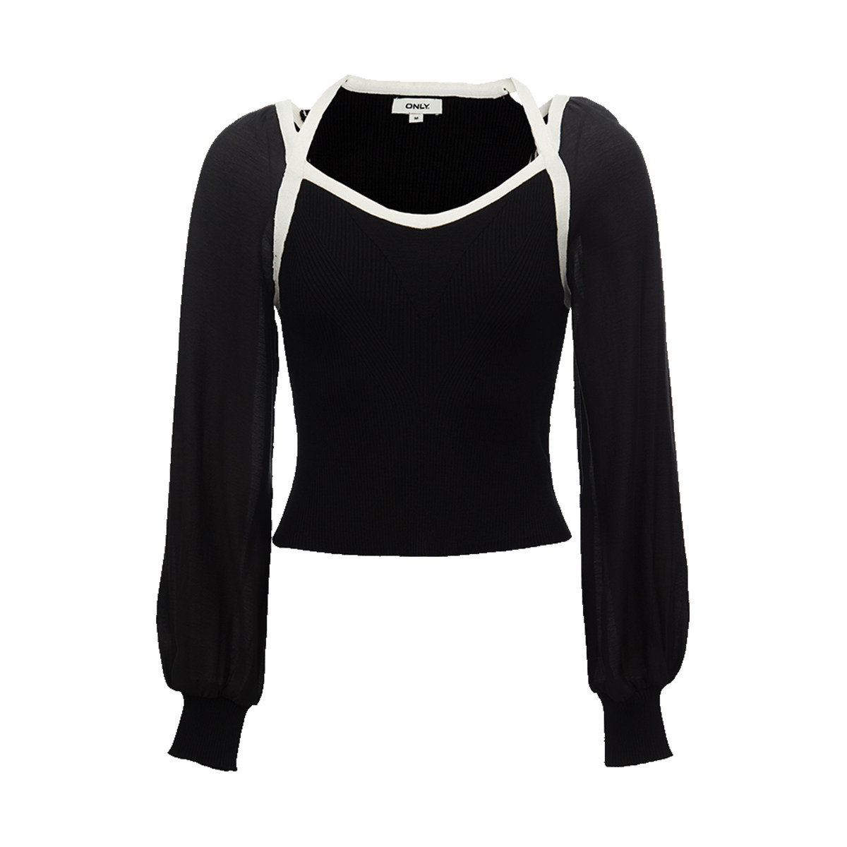 ONLY秋冬通勤风百搭法式纯色方领短款雪纺衫女时尚潮流