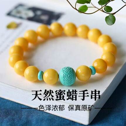 【附国检证书】天然蜜蜡琥珀手链绿松石老蜜鸡油黄单圈男女款手串