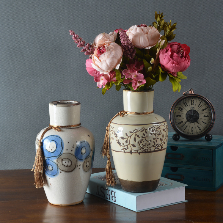 极速美式田园家居陶瓷装饰花瓶家居客厅玄关软装水培花Y插摆件花
