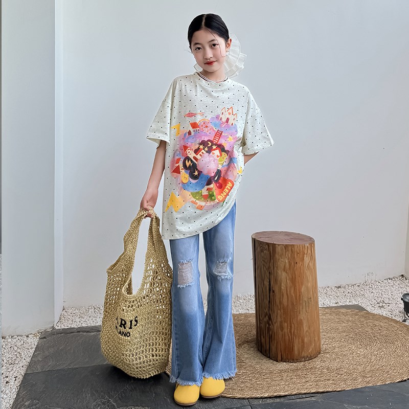 女童t恤夏装短袖2025新款洋气儿童韩版可爱印花上衣女孩宽松半袖