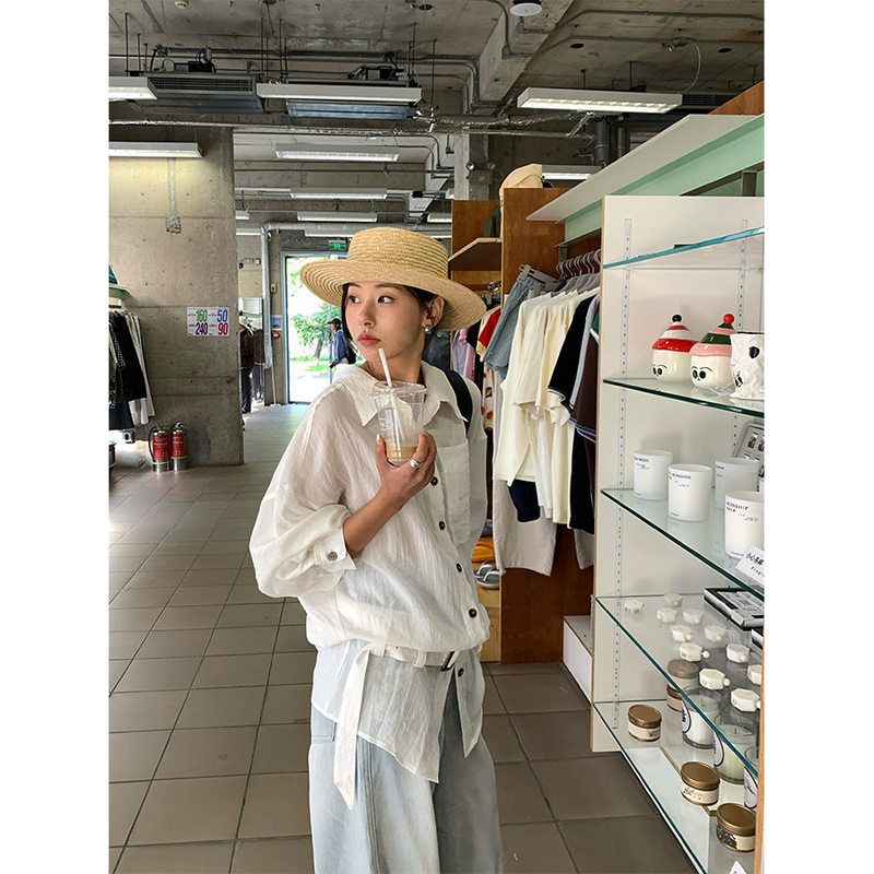 韩系夏新款气质长袖显瘦衬衫薄款系带宽松防晒衬衣520566强明女装