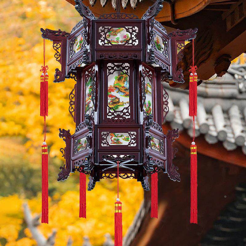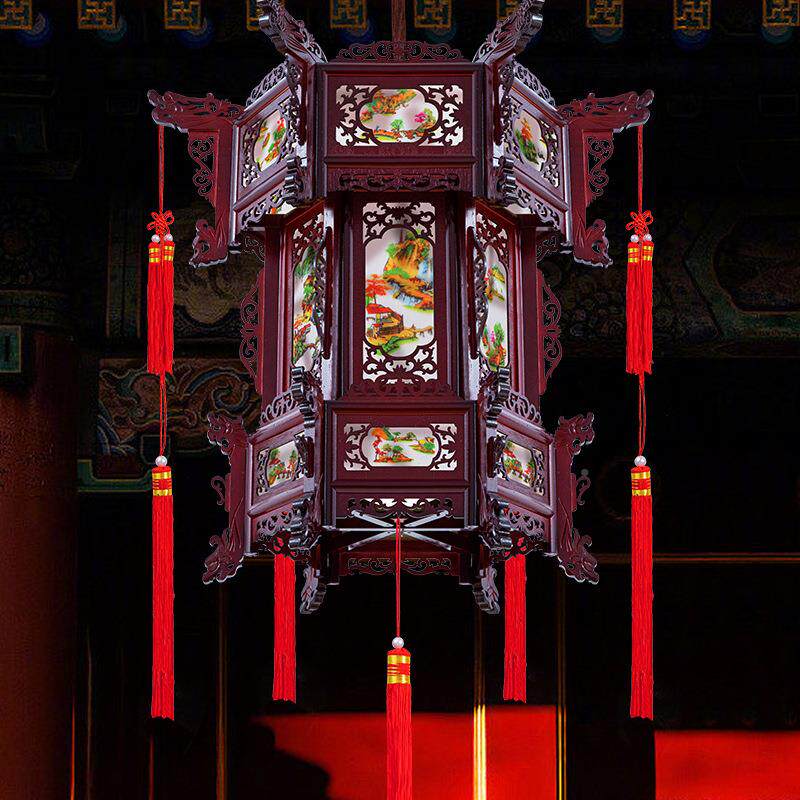 古中式实木仿d灯笼六角GLR中国风阳台大门结婚庭宫院le宫灯庭院装
