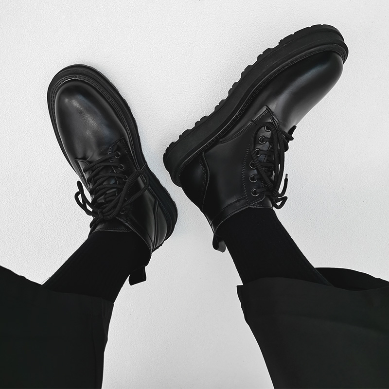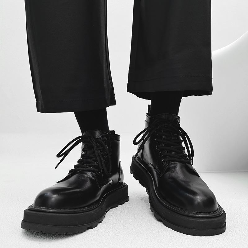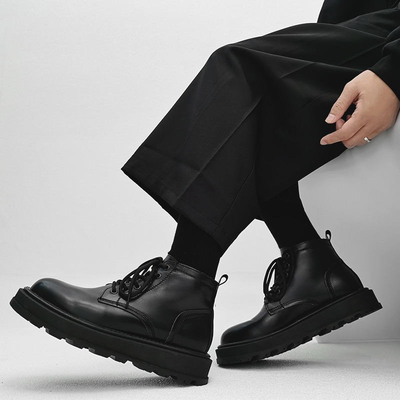 英伦风暗黑色马丁靴高帮工装皮鞋