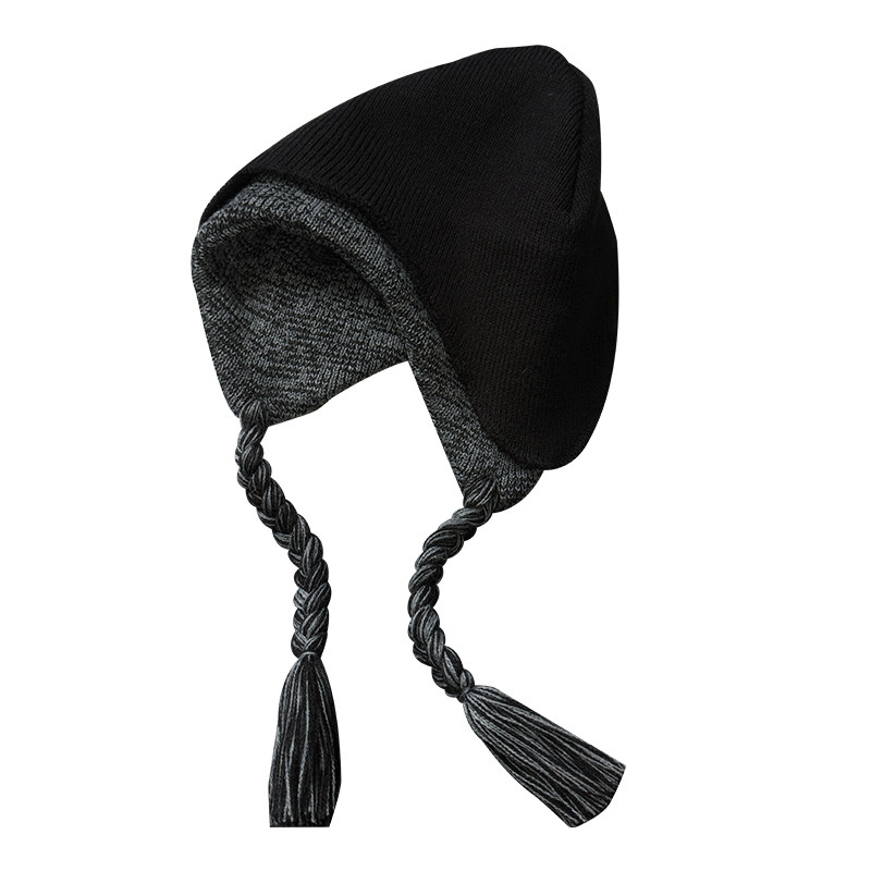 2025新款韩系简约黑灰麻花辫子雷锋帽女秋冬季保暖防寒护耳包头帽