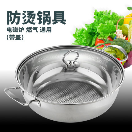 304不锈钢火锅带盖防烫清汤锅电磁炉燃气通用家用汤锅火锅盆商用