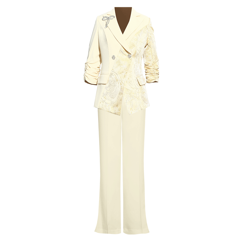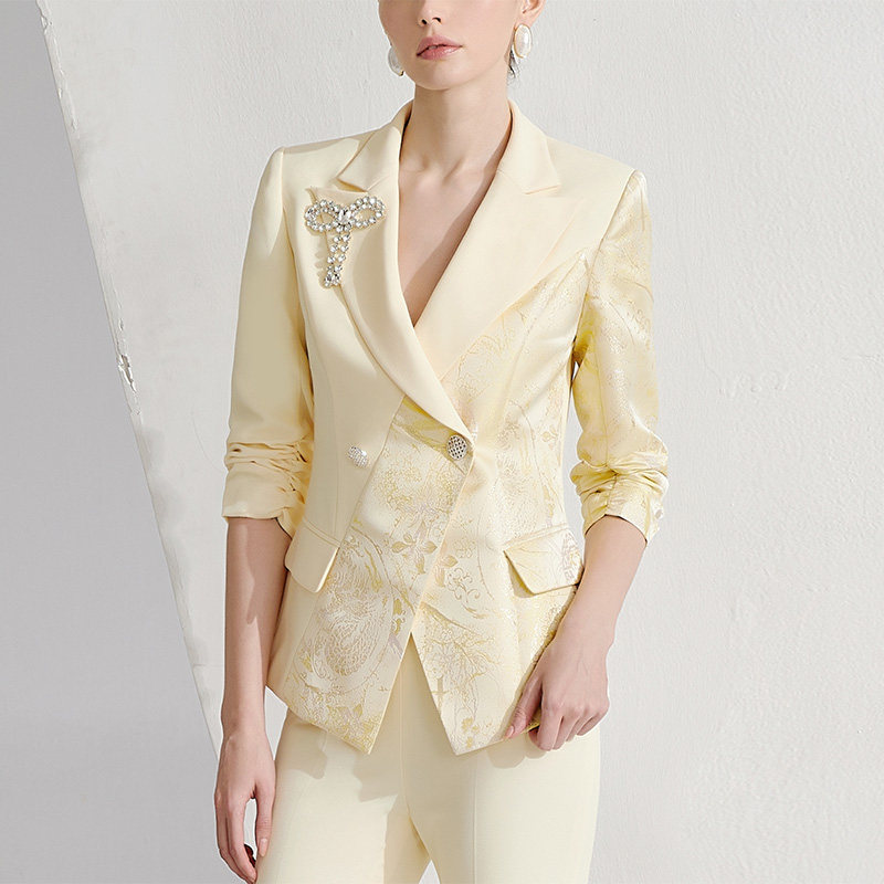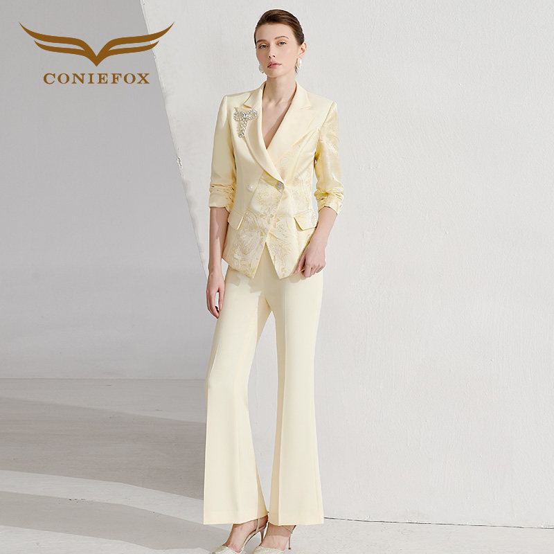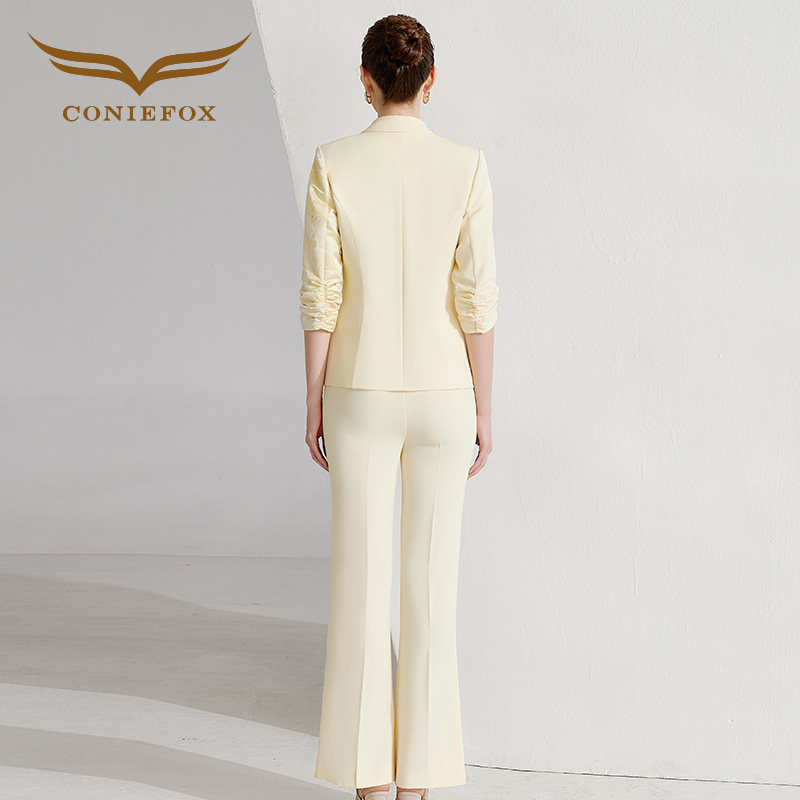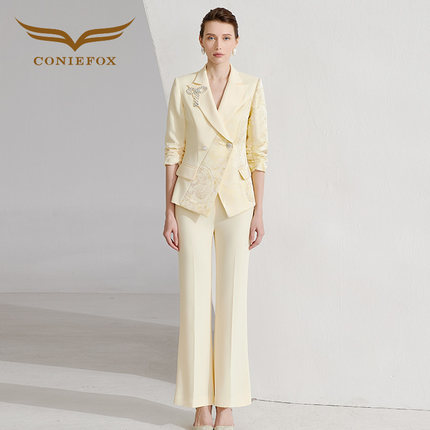 创意狐秋装女正式场合时尚套装减龄一整套穿搭小西装阔腿长裤套装