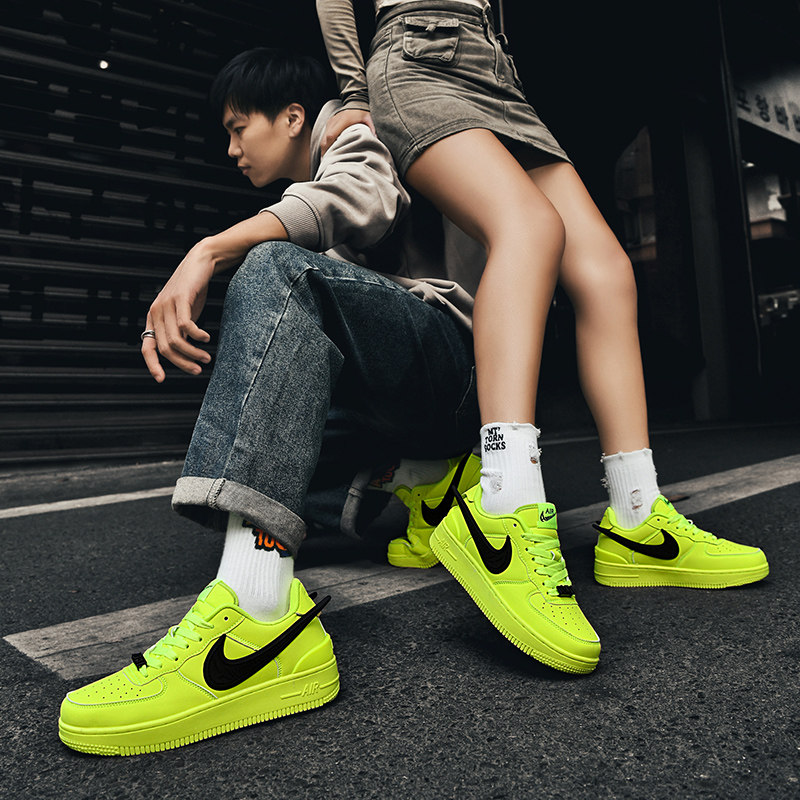 a]男鞋带荧光绿空一号男女运动板鞋带学生低帮dunk情侣款篮球鞋带